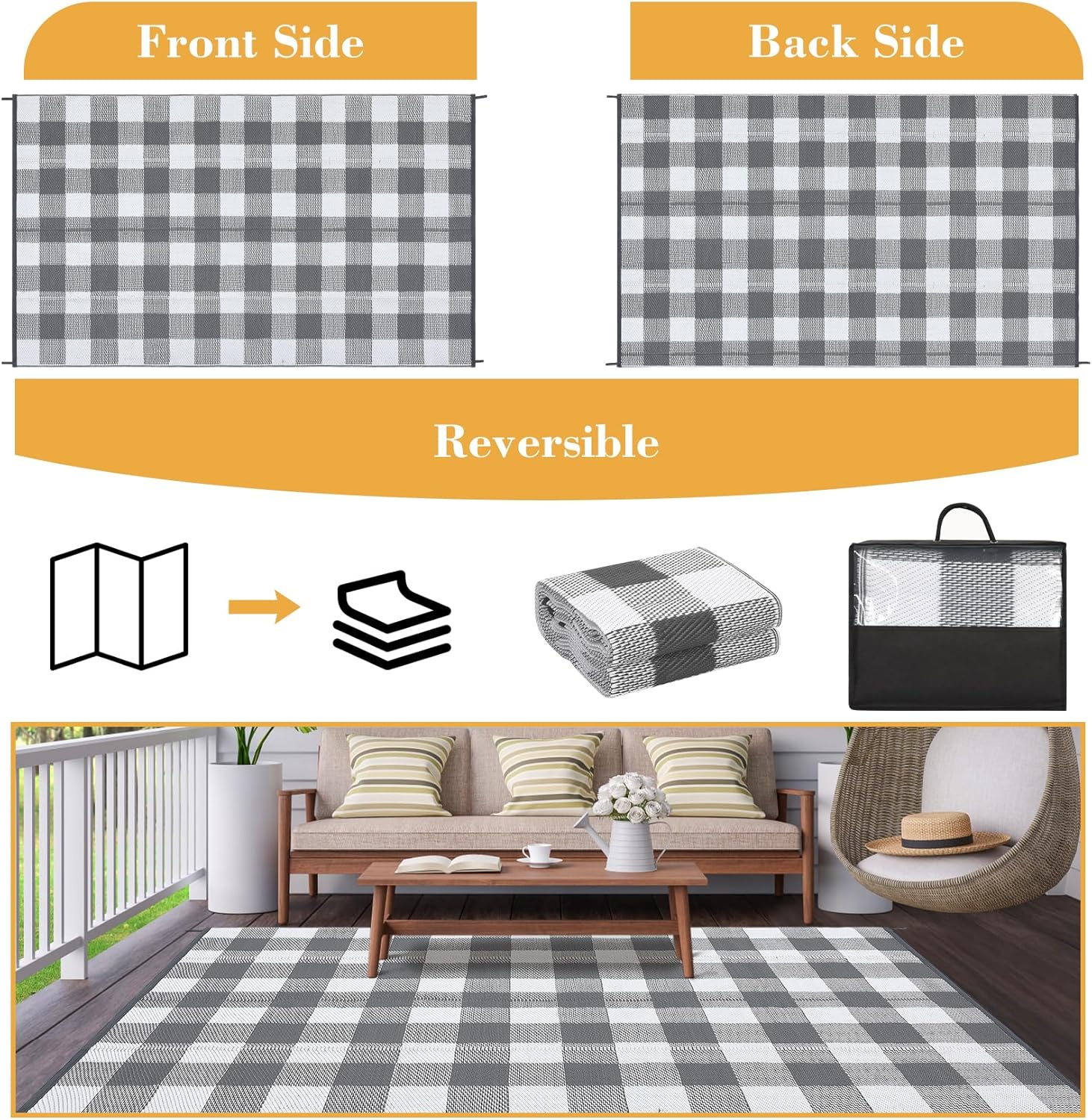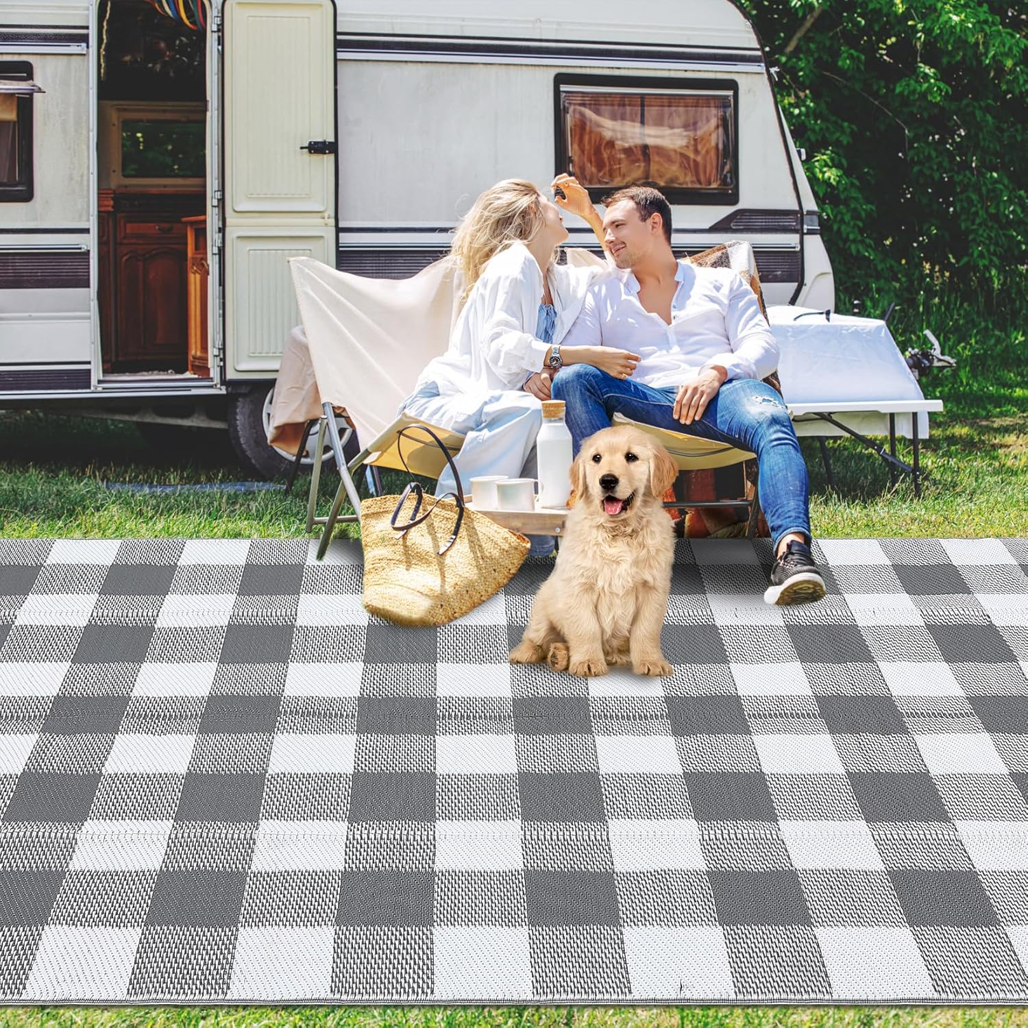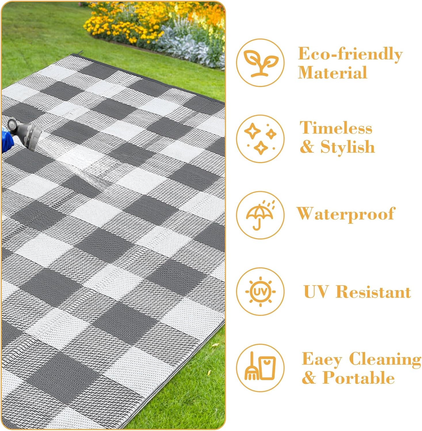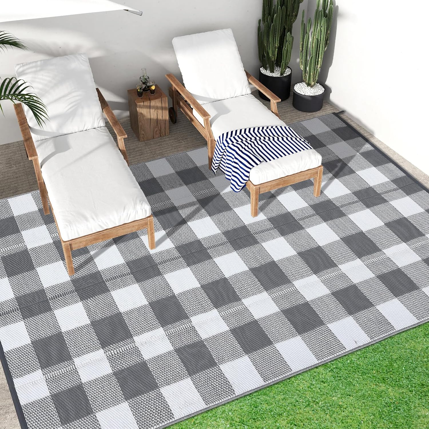 Upgrade your outdoor experience with this modern checkered mat, combining style, durability, and functionality. Order yours today and enjoy the perfect blend of elegance and practicality for any outdoor setting!