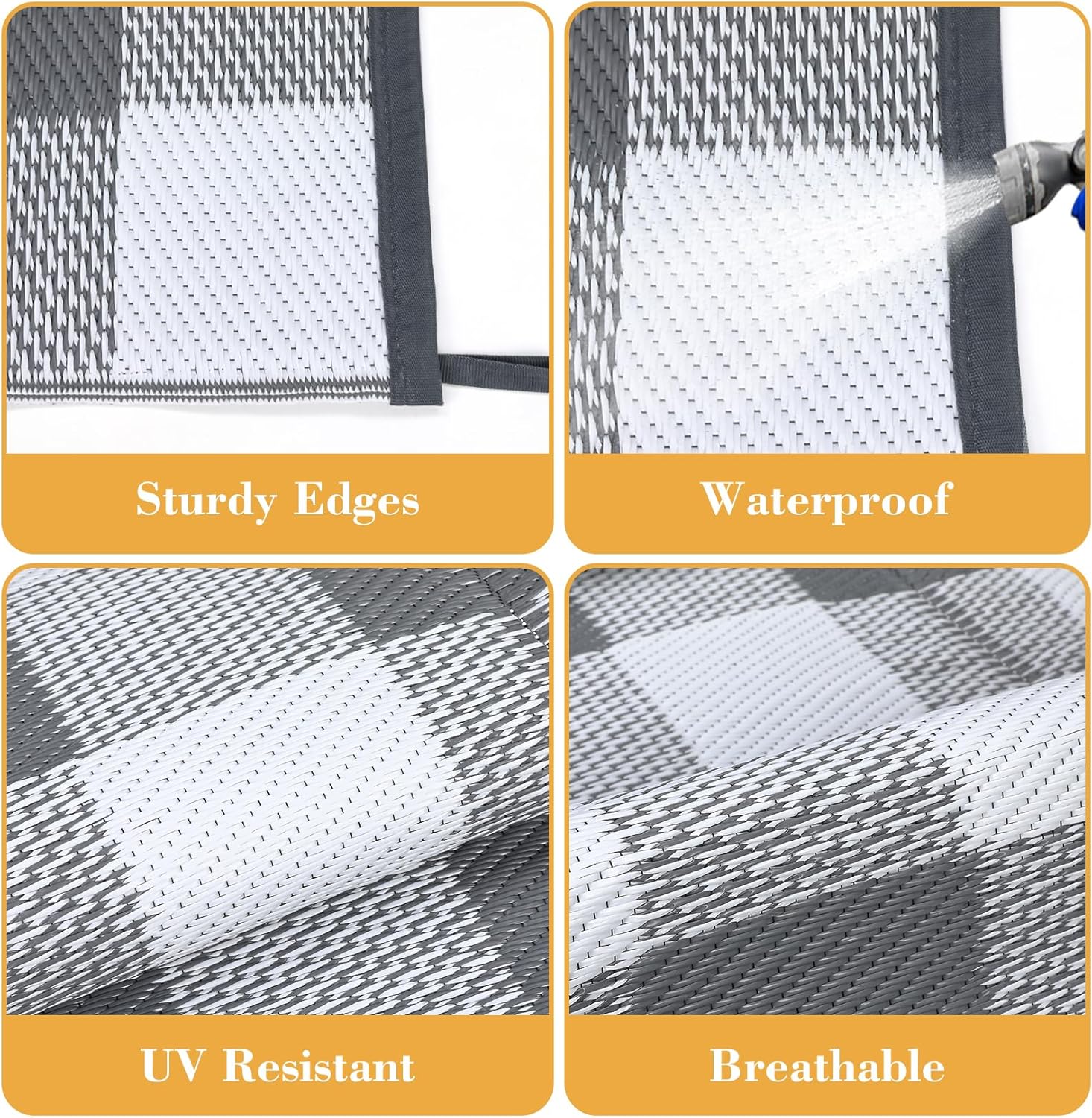 – **Waterproof and Durable:** Made from high-quality, weather-resistant plastic straw material, this rug is built to withstand the elements, ensuring long-lasting use for any outdoor activity.