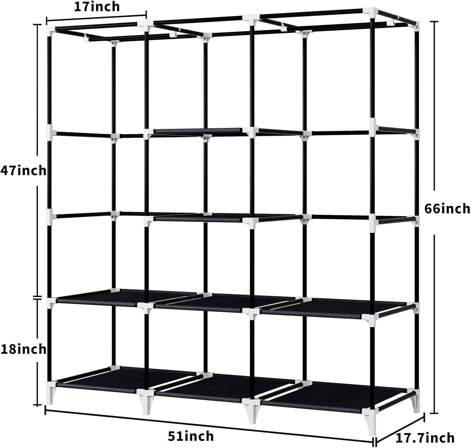 Portable Closet, 51 Inch Wardrobe Closet for Hanging Clothes with 2 Hanging Rods, 8 Storage Organizer Shelves for Bedroom, Durable and Easy to Assemble, Black